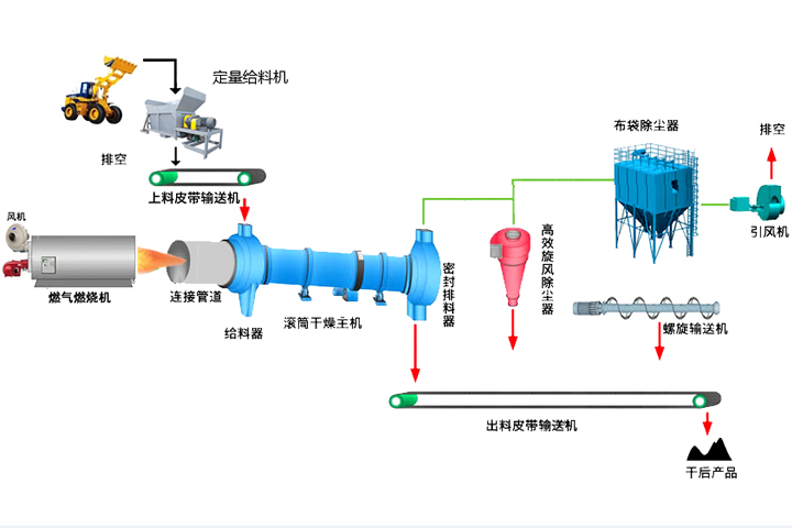 3、對物料特性的適應性比較強,解決烘干機內部粘結問題;