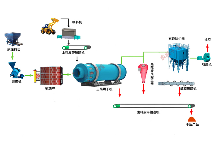 1、熱效率高,采用高溫熱風烘干工藝,實現快速脫水提質;