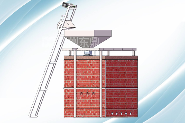 生物質熱風爐由生物質燃燒機、高溫氣體凈化室和混風室組成。工藝原理如下:生物質燃料通過上料機加入到位于燃燒機料斗中,由送料螺旋勻速送入燃燒機的燃燒室,助燃風由風機送入分配室,通過調節閥分別進入爐排下的風倉,然后通過爐排穿過料層。顆粒料里的揮發份 先逸出,顆粒料在爐排上與空氣充分接觸并產生高溫煙氣,高溫火焰從燃燒機出火口噴出。燃盡渣從燃燒機的另一端排出到出渣機,經自動出渣機送出。高溫火焰進入高溫氣體凈化室進行二次燃燒,煙氣夾帶的粉塵在凈化室內經高溫聚合沉降。凈化室內出來的潔凈熱風(~1000℃)摻入一定量的冷風,混合成物料干燥所需溫度的熱風進入烘干設備(如噴霧塔、回轉窯、烘箱、烘房、氣流干燥器、流化床等)對物料進行烘干。熱風的溫度可根據工藝需要調整,連續供熱風溫度穩定性保持±5℃。