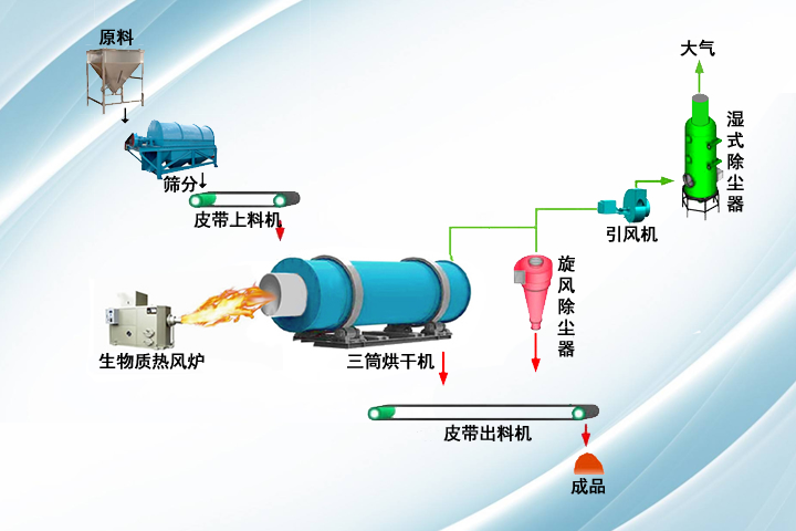 檸條烘干機設(shè)備采用三回程烘干工藝,多種周向揚料組合分布,可以根據(jù)應(yīng)用需求優(yōu)化工藝