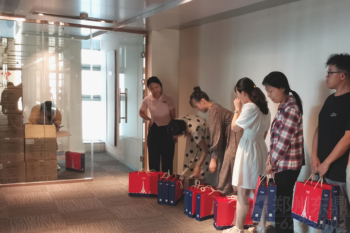 喜迎佳節(jié),公司也提前做好中秋放假安排部署,提前為大家發(fā)放了月餅及紅包等福利,圖為東鼎小伙伴們在現(xiàn)場領(lǐng)取禮品。