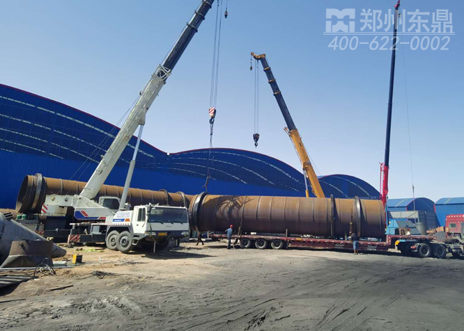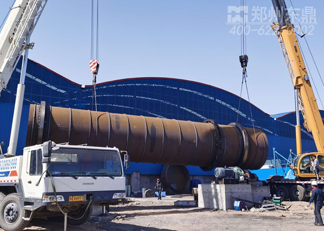 全面推動工程安裝進度,8月3日,寧夏鹽池雙線1000噸煤泥烘干機項目主滾筒設備實施吊裝作業,我司項目負責人全程指揮調動,吊裝人員、設備運輸人員、現場工程技術人員實時互動,很快2套龐大的煤泥烘干機滾筒主體就穩穩降落到平臺上,我司工程人員對設備的安裝精度進行了仔細的調校,圖為項目施工現場。