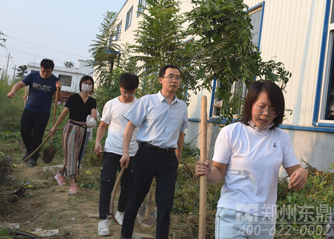 迎金秋煤泥烘干機廠家東鼎開展戶外除草活動